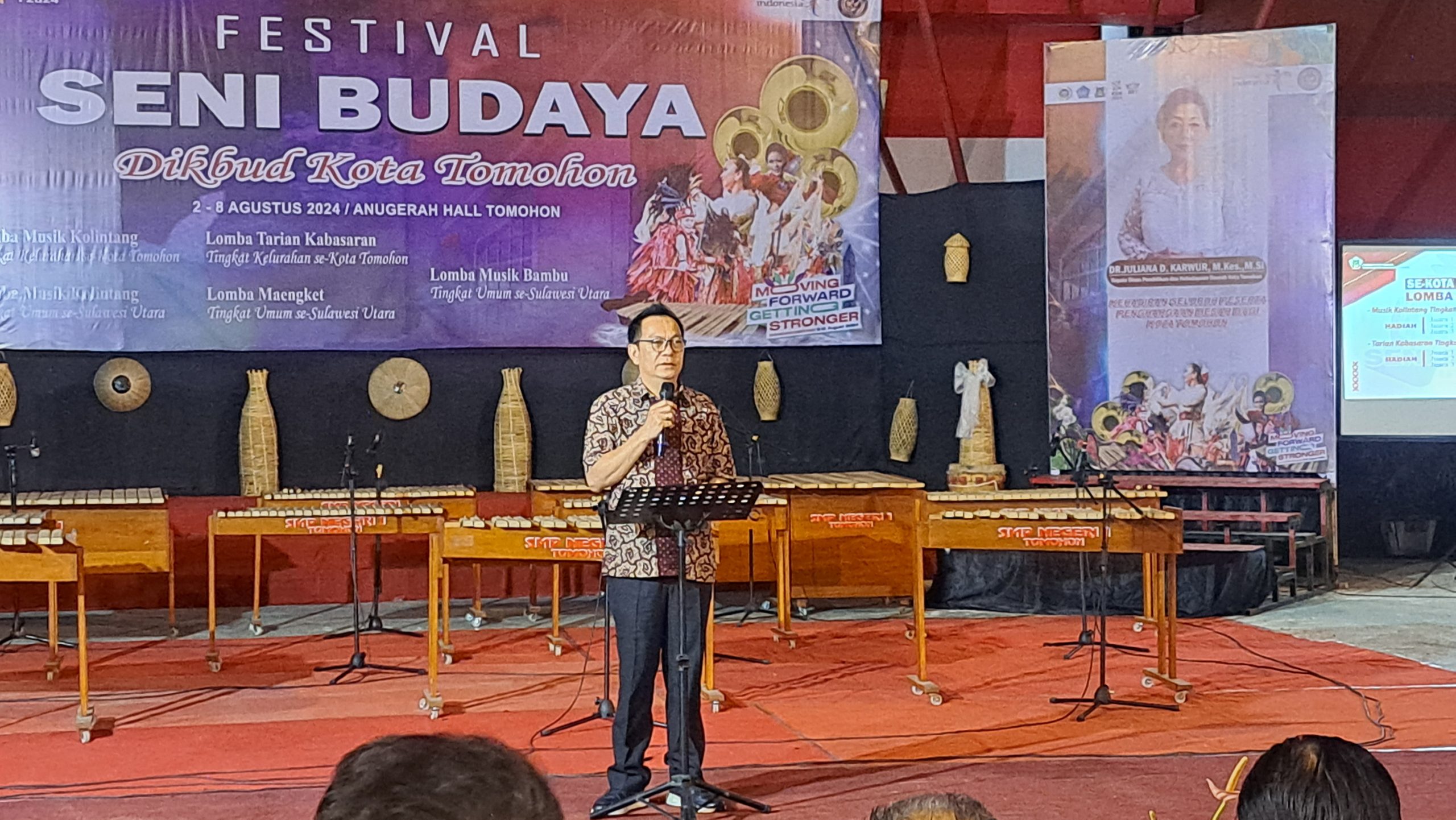 TOMOHON,SULUTTEMPO.CIM – Walikota Tomohon, Caroll J. A. Senduk, SH, membuka secara langsung kegiatan Festival Seni dan Budaya yang meliputi Lomba Kolintang dan Kabasaran Tingkat Kelurahan, serta Lomba Kolintang, Maengket, dan Musik Bambu Tingkat Umum. Acara ini diselenggarakan di Anugerah Hall Tomohon dan dihadiri oleh berbagai tokoh serta masyarakat setempat ( Jumat, 2/8/2024).
