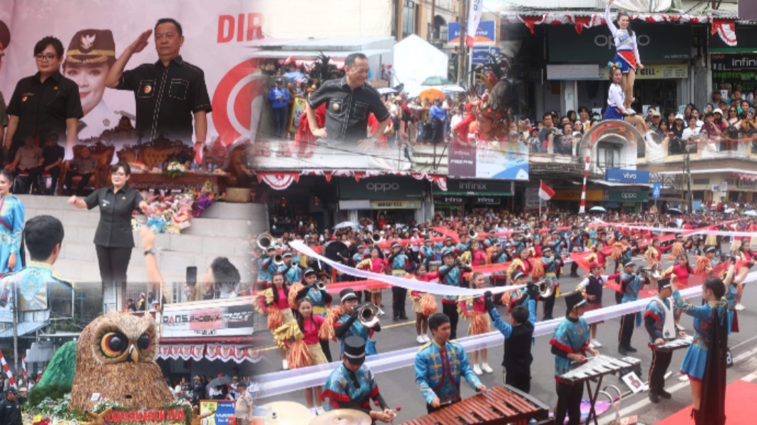 TOMOHON,SULUTTEMPO.COM – Pemerintah Kota (Pemkot) Tomohon melaksanakan Defile Kemerdekaan Republik Indonesia Ke- 80 dan Pawai Pembangunan, yang disaksikan langsung oleh Wali Kota Tomohon Caroll Senduk dan Wakil Wali Kota Tomohon Sendy Rumajar.