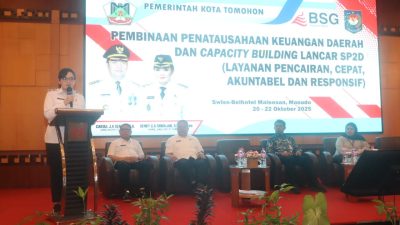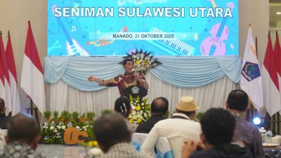 SULUTTEMPO.COM-Gubernur Sulawesi Utara Mayjen TNI (Purn) Yulius Stevanus SE, menghadiri acara pengukuhan Heru Setiawan sebagai Kepala Perwakilan Badan Pengawasan Keuangan dan Pembangunan (BPKP) Provinsi Sulawesi Utara (Sulut) yang berlangsung di Wisma Negara Rumah Dinas Gubernur Bumi Beringin Manado, Selasa (21/10/2025).