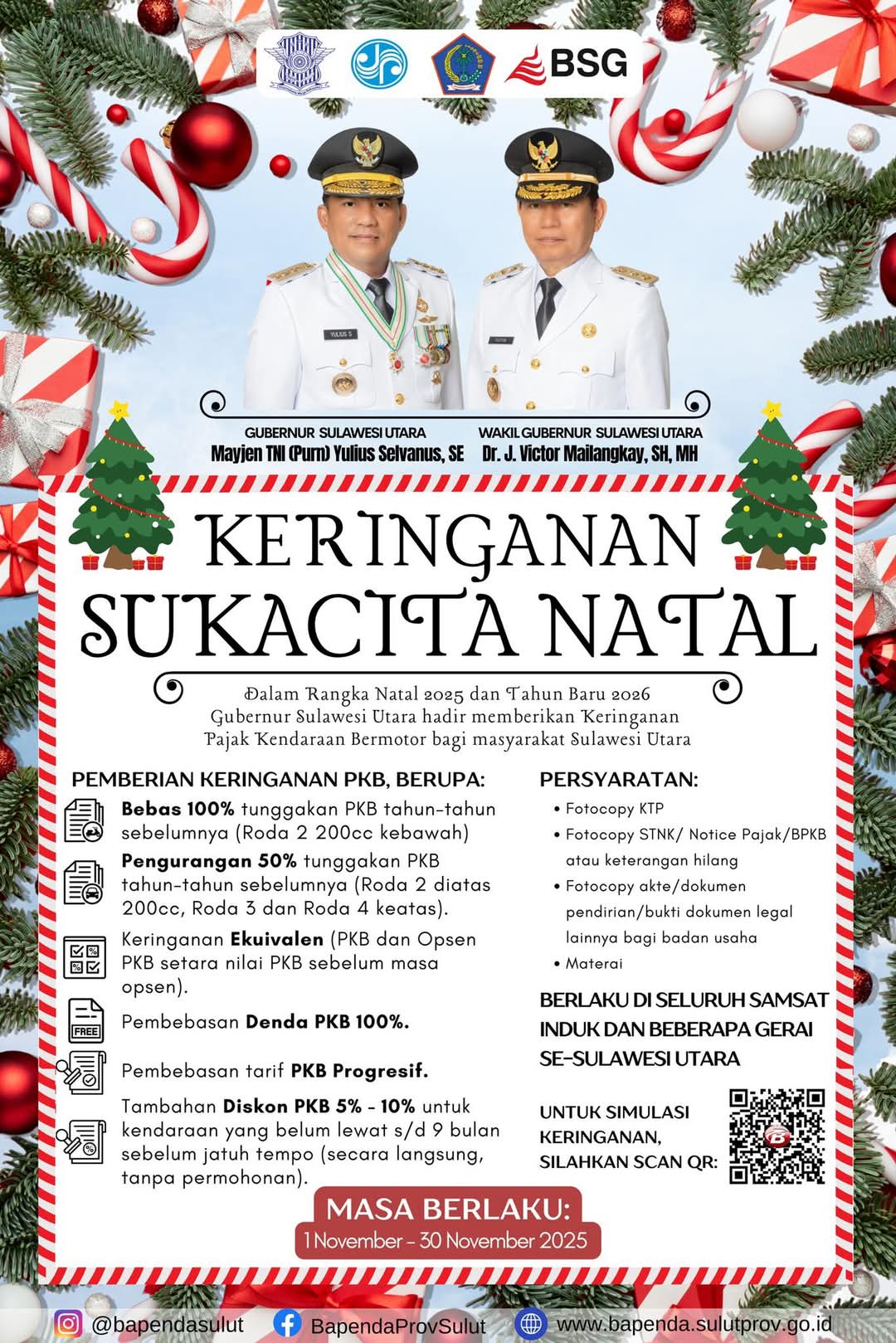 Keringanan luar biasa ini dirancang untuk menyambut Natal 2025 dan Tahun Baru 2026, memberikan berbagai kemudahan bagi pemilik kendaraan di Sulawesi Utara.