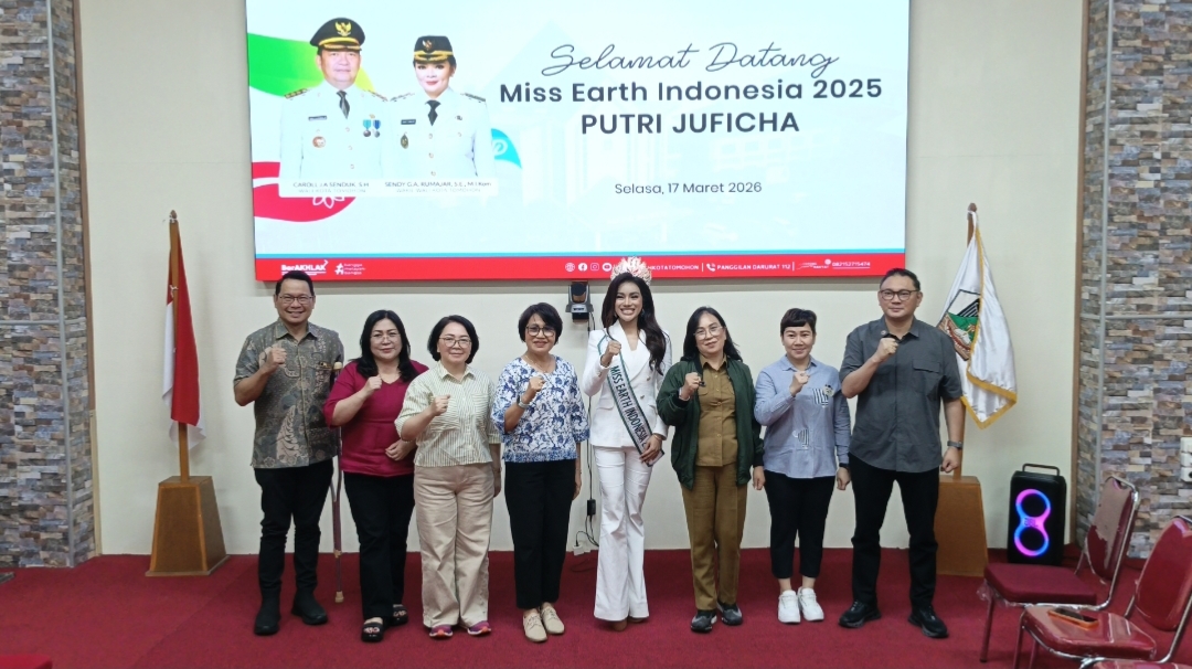 TOMOHON,SULUTTEMPO.COM – Selasa 17 Maret 2027 Wali Kota Tomohon yang diwakili oleh Asisten Perekonomian dan Pembangunan Sekretaris Daerah Kota Tomohon Drs. Lilly Solang, M.M. menerima kunjungan kerja (Kunker) Putri Juficha (Miss Earth Indonesia 2025) di Pemerintah Kota Tomohon yang bertempat di Command Center Pemkot Tomohon.
